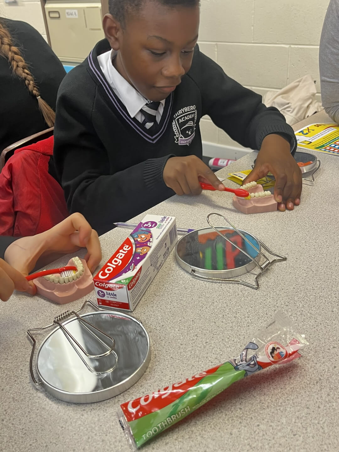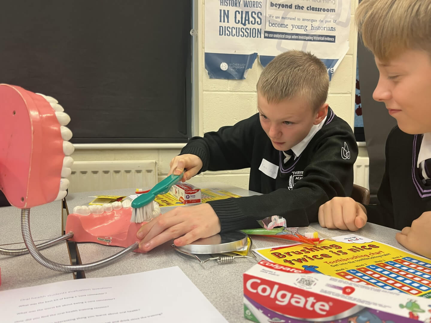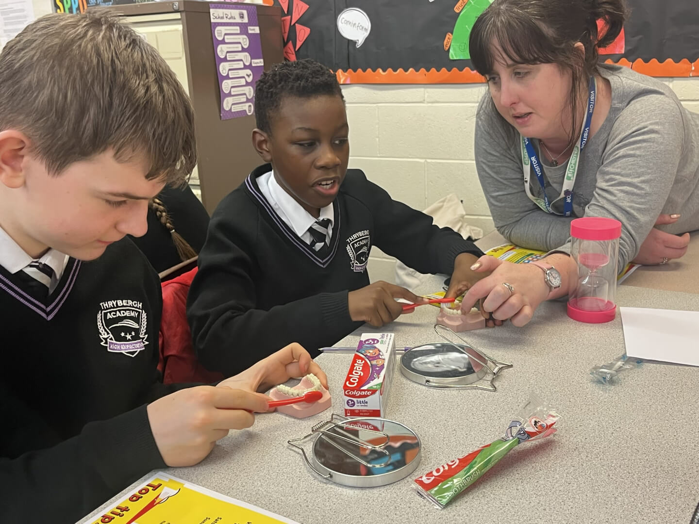 On Tuesday, a group of Y8 students took part in an exciting new opportunity focused on promoting oral health and hygiene within our school community. During the morning session, they received specialist training from NHS professionals, learning about the importance of good oral hygiene and how to care for our teeth effectively.