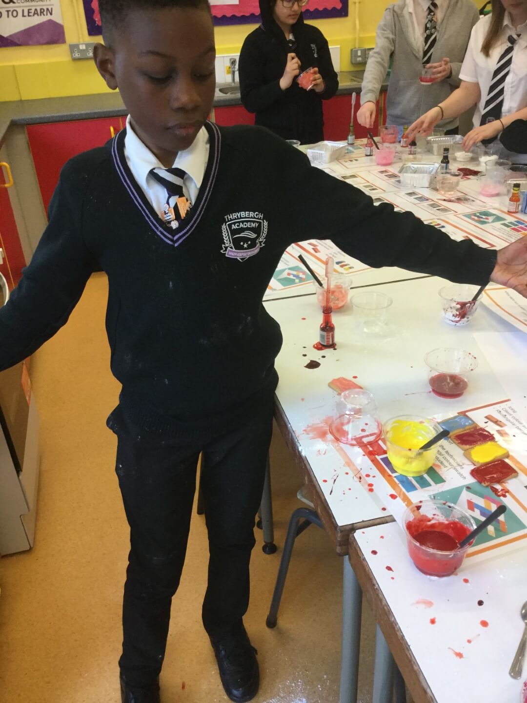 On Tuesday, we held our first Science Club Technician Challenge of the term. Students were challenged to mix icing sugar, a small amount of water, and different food dyes to match a set colour template, while also learning about the role of a Technician in different job areas.